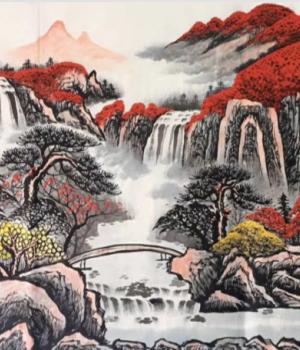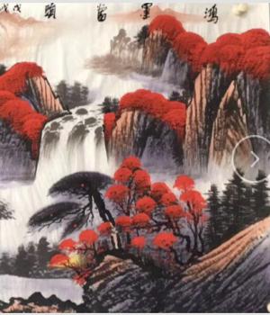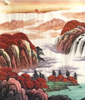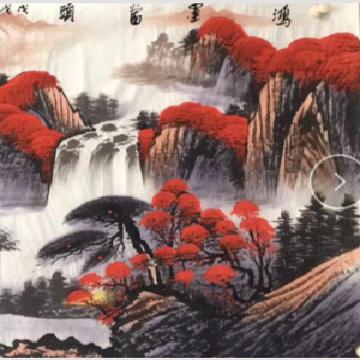本商品不在线出售,有意向电话咨询 鸿运当头系列作品为郭友华大师创作的帝王风水画,每一幅作品都不相同,是画家将风水学构图以国画的形式创作出一幅幅精品画卷展示给人们。一:漫山遍野的红叶象征着鸿运当头、数棵青松矗立在湖水旁象征青山绿水江山永固,延绵的山脉似一条巨龙飞跃而起,寓意事业蒸蒸日上,飞黄腾达!二:山间瀑布川流不息,寓意财源滚滚永不间断。整个画面如同聚宝盆一样,财源聚集在身边!三:青绿的草地既能起到画龙点睛的作用,又有基业长青的意思。